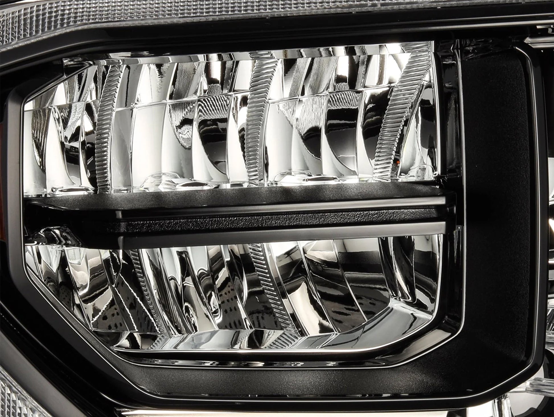 Inside, the 2nd gen Toyota Tundra LUXX-Series headlights feature a crystal interior design with built-in LED chips, developed by AlphaRex, ensuring reliable performance for both high and low beam applications. Elevate your 2nd gen Toyota Tundra with AlphaRex's 2nd gen Toyota Tundra LUXX-Series headlights, combining advanced technology with sleek design for an enhanced driving experience.