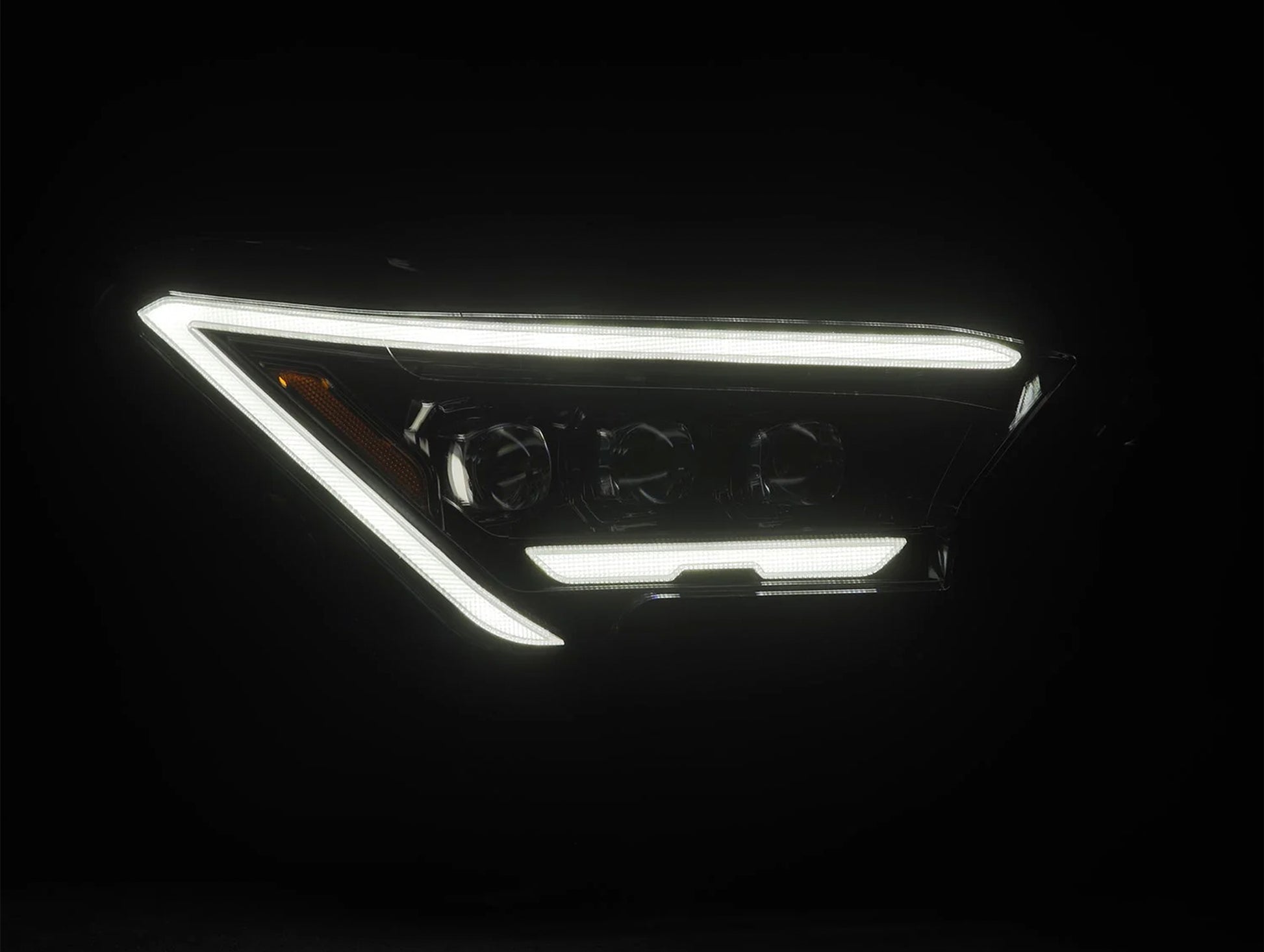 With a tri-projector design, these 4th gen Tacoma NOVA-Series headlights deliver exceptional lighting performance. All three projectors function as low beams, while the inner projector provides dual beam functionality for both low and high beams, ensuring optimal visibility in all driving conditions.