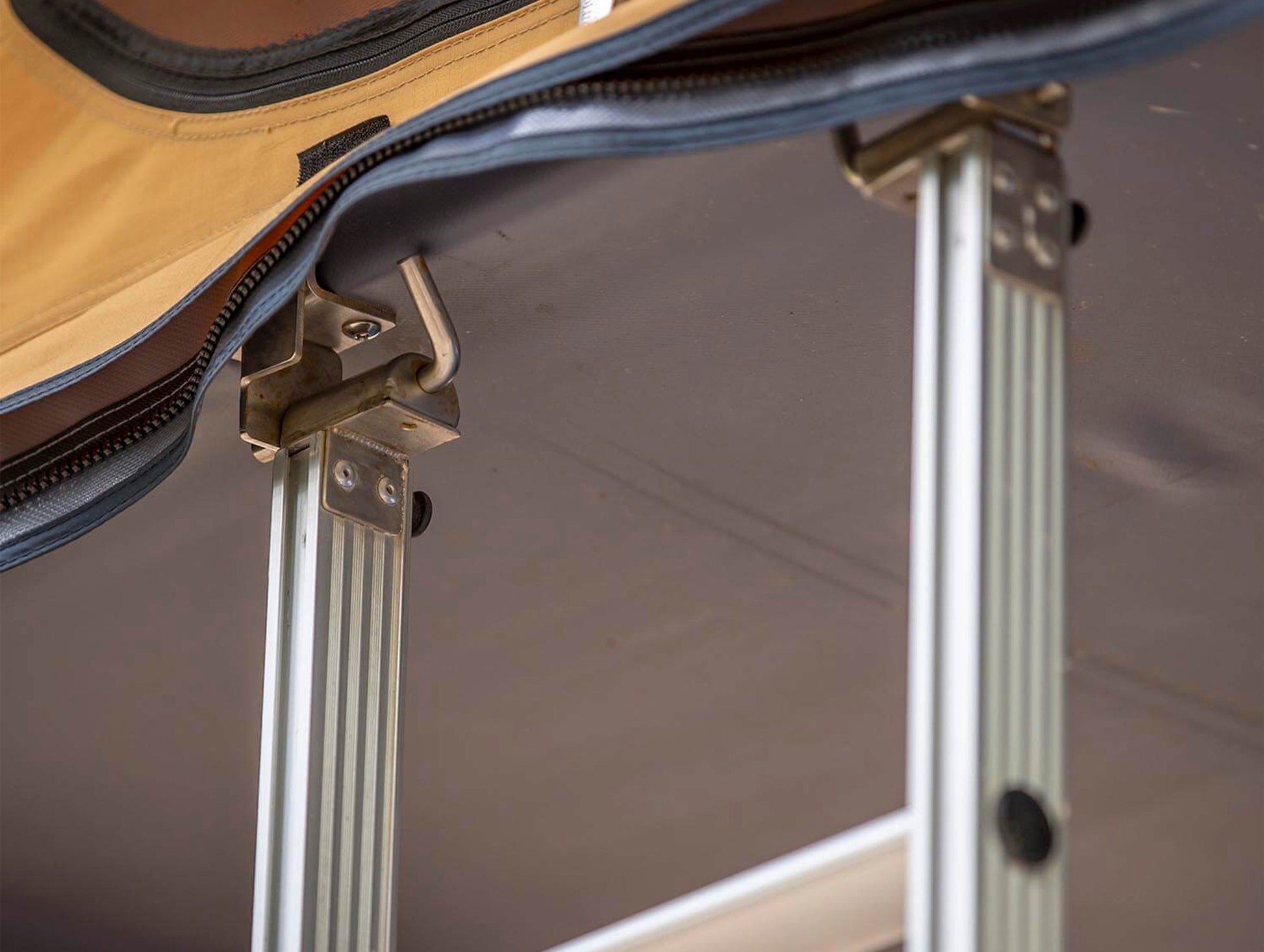 The ARB Simpson III Rooftop Tent paired with the Annex delivers the ultimate in comfort and convenience while traveling. Unfolding in minutes, the Rooftop Tent provides sleeping quarters off the ground and protected from the elements, while the Annex adds space and storage. An Annex and an aluminum ladder are now supplied in a kit with the Simpson III Tent to compliment the preexisting quality features.