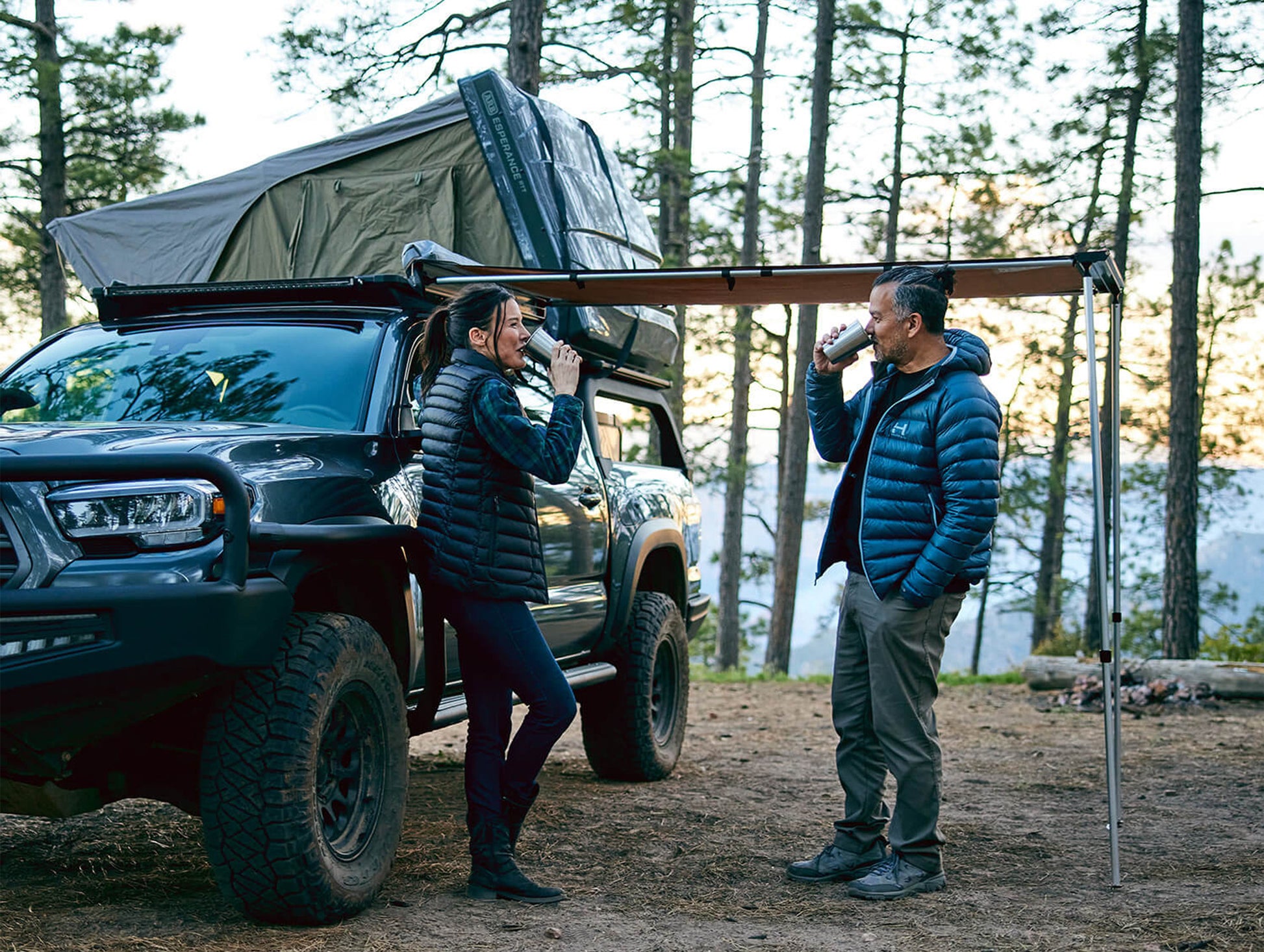 Attaching neatly to most vehicles, these self-standing retractable awnings fit onto the side of most roof racks and roof bars, and are conveniently stored for immediate use on arrival. Specifically designed for harsh wilderness conditions, the awnings feature anodized height adjustable telescopic legs, hook and loop ties to secure roof, thick reinforced aluminum extrusions all secured and free from the outside elements in a heavy duty nylon reinforced PVC bag. Constructed from tough PU coated 300gsm poly/cotton rip stop canvas, the awnings are fully waterproof and offer a UVP 50+ rating. ARB Awnings come in three great sizes, and fit up to 6.9ft (2.1m) high mounting points. (Length being the distance from the vehicle out). Comes with pegs and guy ropes for securing legs, stainless steel mounting nuts and bolts and comprehensive instructions.