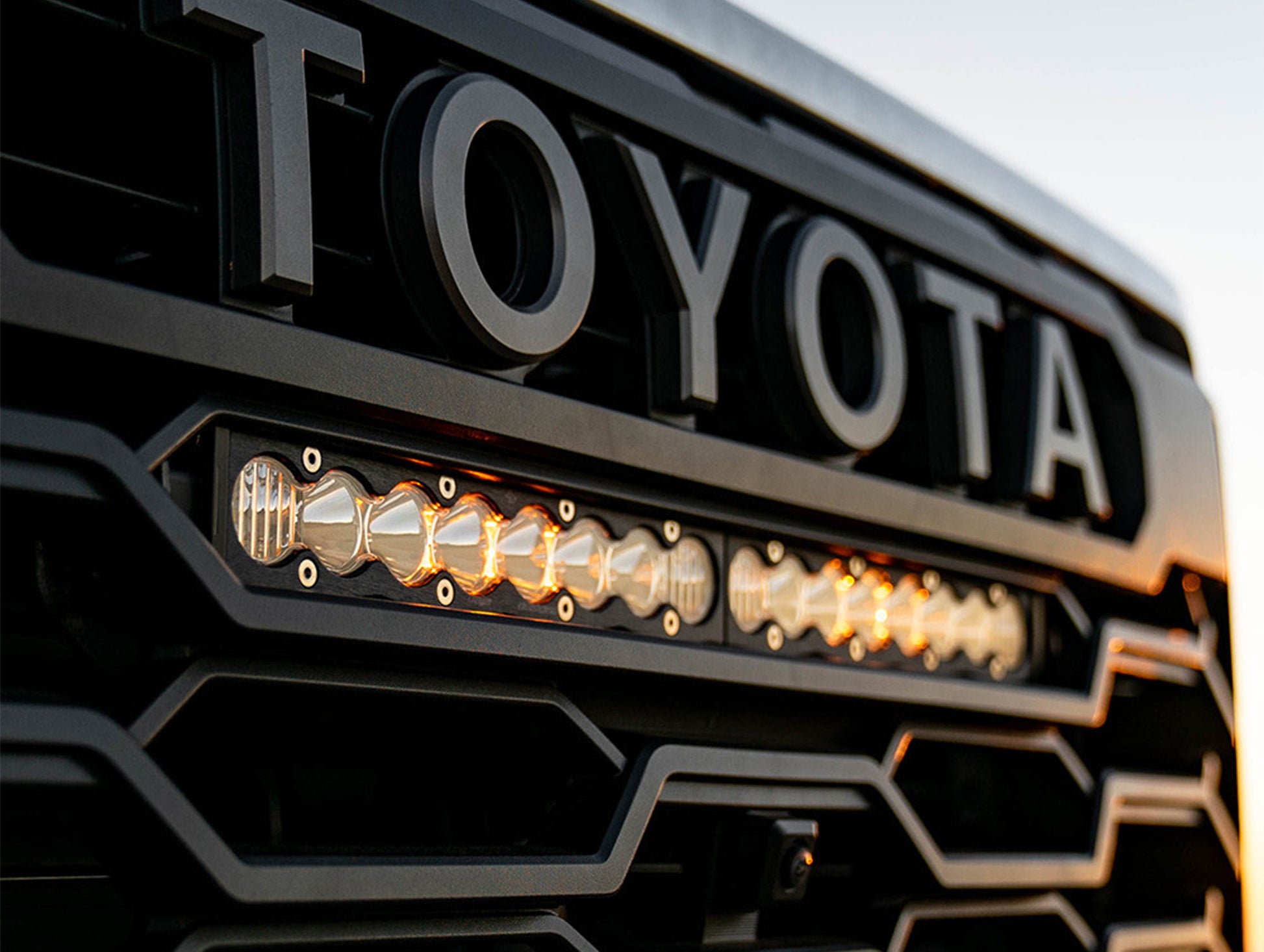 The Baja Designs 20-inch S8 replacement grille light kit for the 2022+ Toyota Tundra TRD Pro gives you the ability to replace or add a light bar to the stock TRD Pro model grille. This kit allows you to maintain the low profile appearance while maximizing the performance with Baja Designs' 20-inch S8 light bar in a clear or baja amber driving/combo pattern, giving you 12,700 raw lumens of forward projected light illuminating lighting zones 1-4. This kit comes with everything you need for a painless install. Backed by our 30-day Satisfaction Guarantee and Lifetime limited warranty for the ultimate in purchase protection. NOTE: This kit fits the TRD Pro models only.