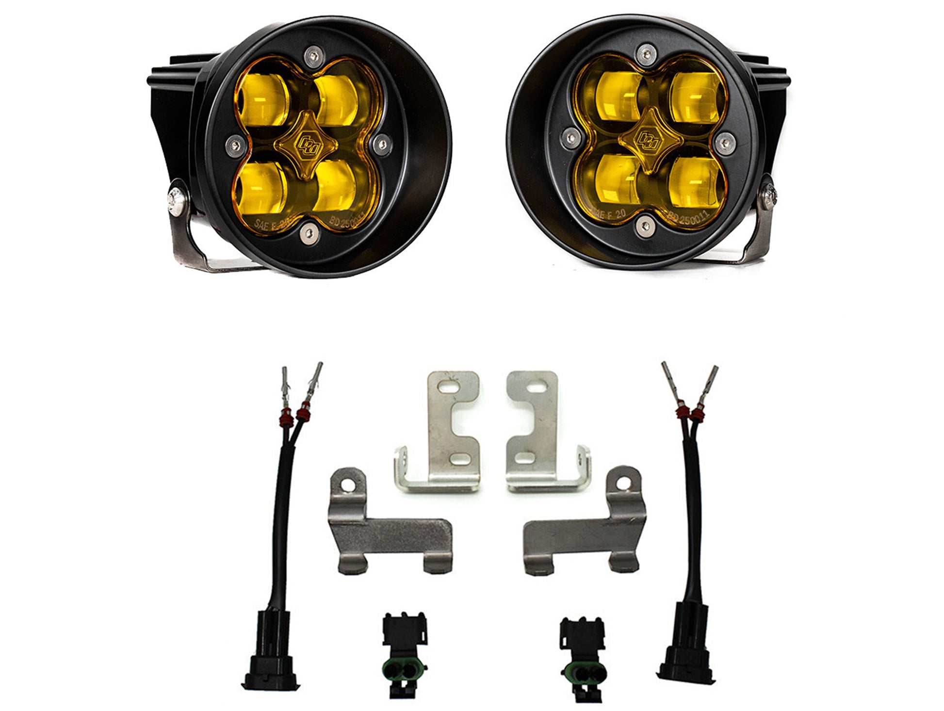 Baja Designs next generation Squadron® SAE fog pocket kit for the Toyota Tacoma(’12-22)/4Runner (’10-22) and Tundra (’14-21) is the perfect road-legal auxiliary fog light on the market today. Engineered with all-new aspheric projector optics and with their advanced LED technology provides a performance increase in luminous flux of 56% over their previous generation SAE model. The all-new Squadron® SAE delivers 2,420 lumens per light with output reaching up to 15,800 candela at just 29 watts. Keeping you safe on the road or trails, the Squadron® SAE will illuminate Zone 1 with a controlled, sharp cutoff from the combination of the new LED technology and highly efficient aspheric projector optics. Designed to meet the current SAE J583 fog lamp requirements, the Squadron® SAE is fully compliant with on-road regulations. This innovative approach allows for a highly controlled light pattern with a sharp cutoff, making them an ideal choice for driving through dust, fog, and inclement weather. Backed by our limited lifetime warranty and 30-day satisfaction guarantee, giving you the ultimate in-purchase protection. This kit comes with everything you need to install. USPTO Reg No. 5,766,659