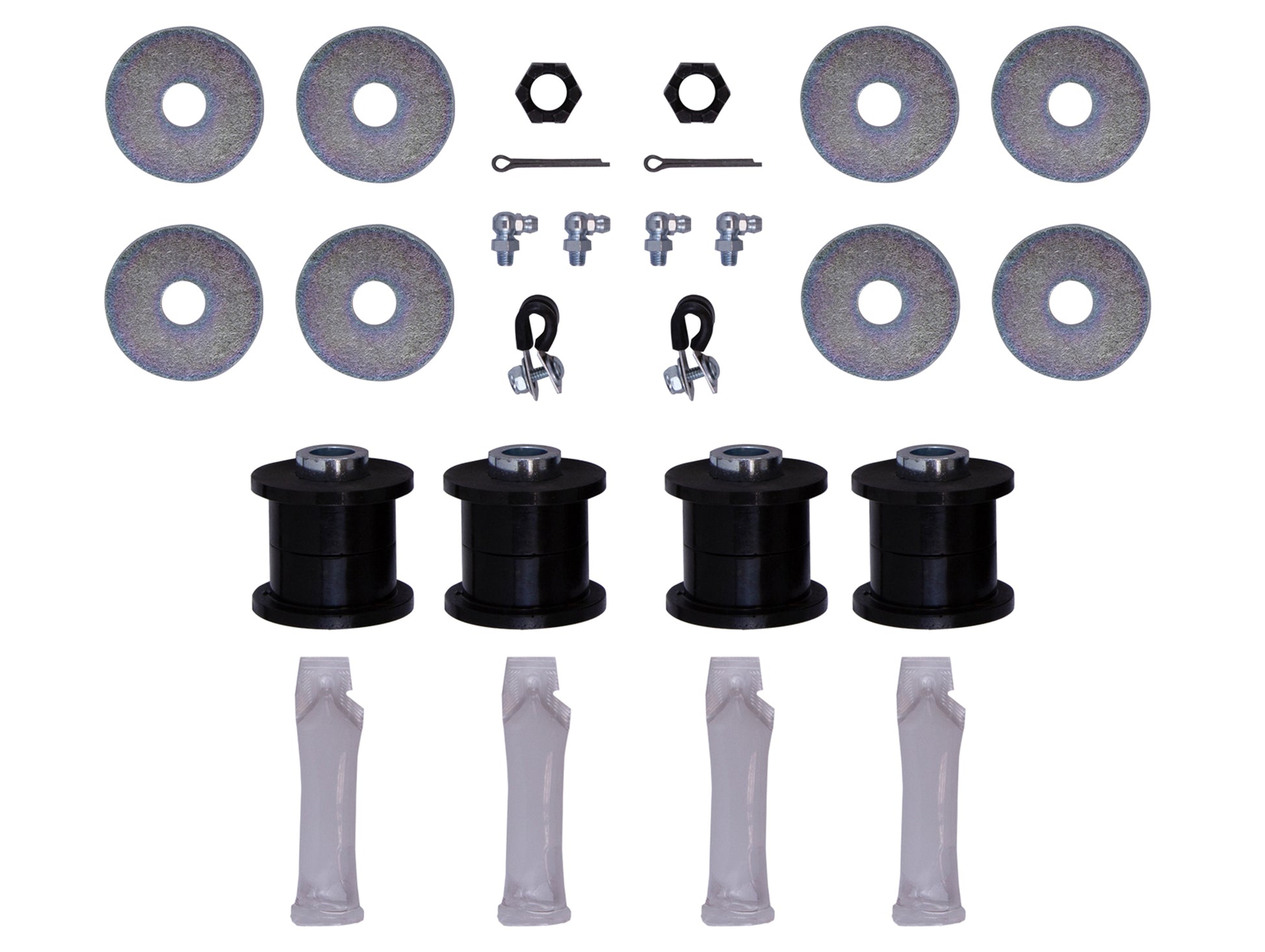 - Easy servicing without disassembly using provided grease fittings on bushings and ball joints