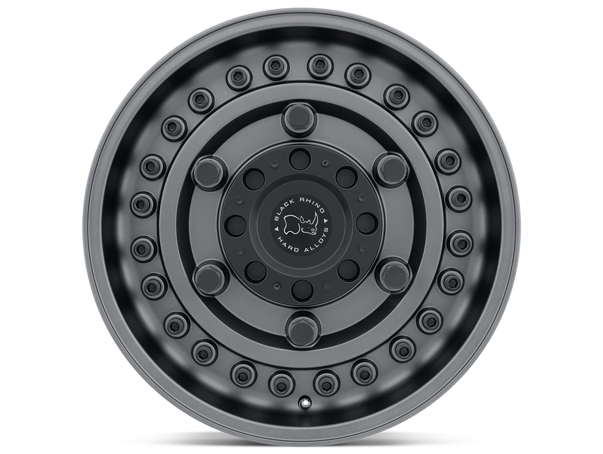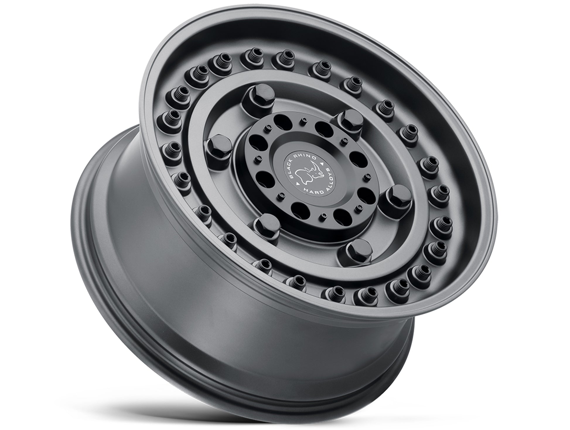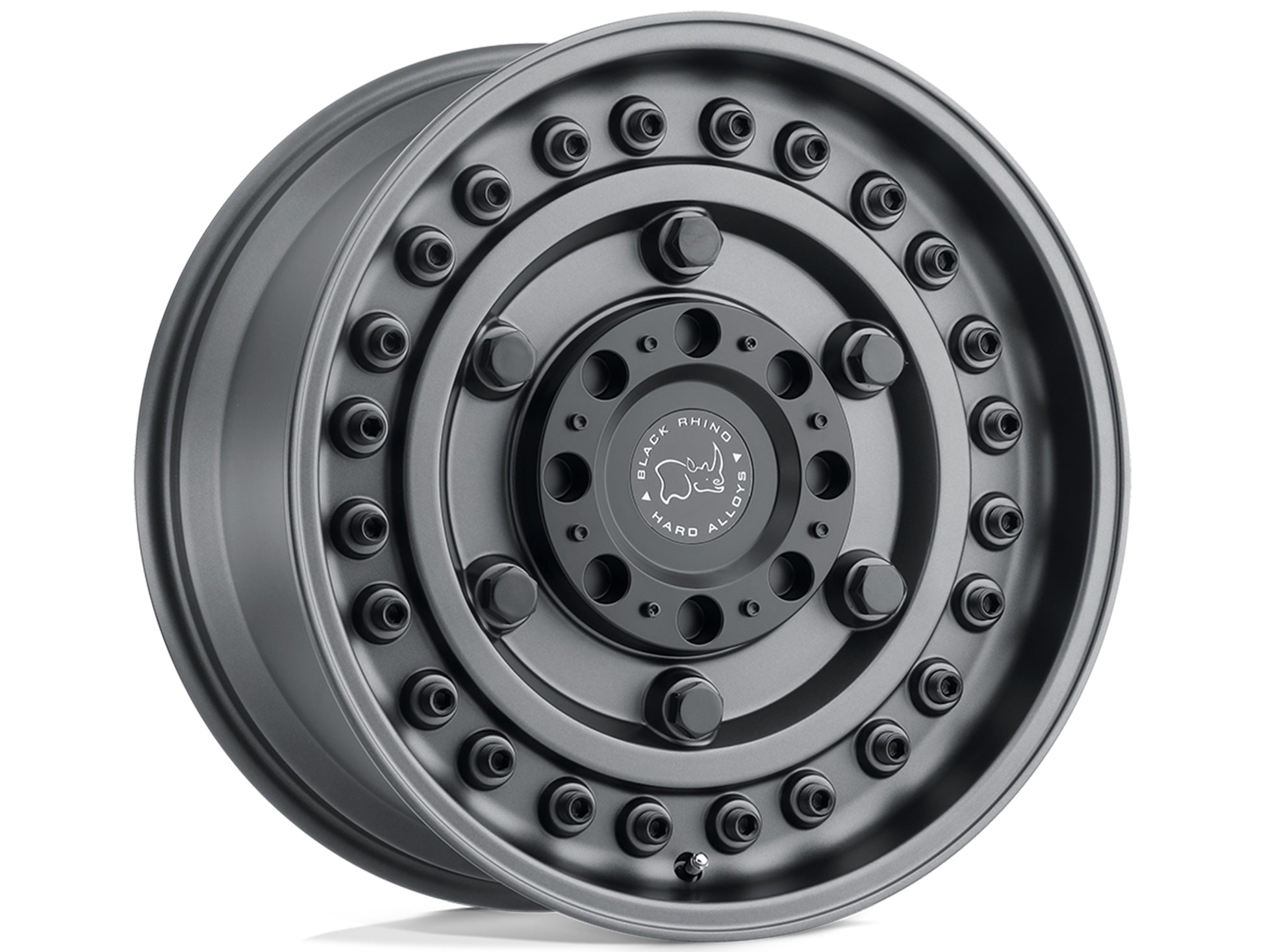 Make the Black Rhino Armory the weapon of choice for your next off-road operation. Featuring renowned Black Rhino tactical style and mil-spec attitude, the Armory is a dramatic statement of ruggedness that's perfect for the military-minded off-road enthusiast. Black Rhino's mission was to cover the best range of stock and lifted off-highway vehicles; that's why Armory off-road wheels are available in 16x8, 17x9.5, 18x9.5, 20x9.5 and 20x12 sizes. Offsets range from -44mm to +45mm and 5, 6 and 8-lug bolt patterns, including an 8x180 pattern for newer GMC and Chevrolet heavy duty trucks. Gear up and get out with the Black Rhino Armory.