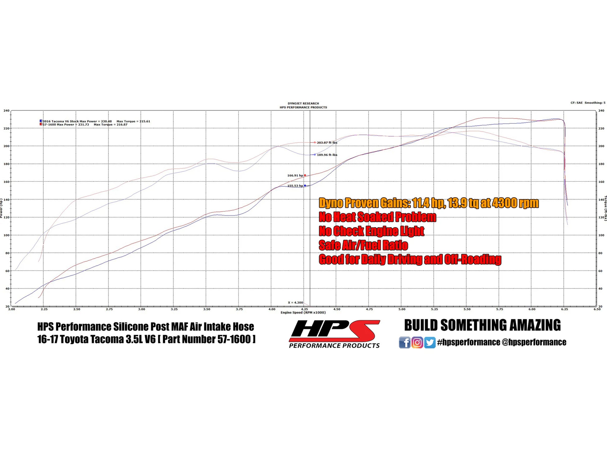 HPS Reinforced Silicone Post MAF Air Intake Hose Kit - 16-23 Toyota Tacoma