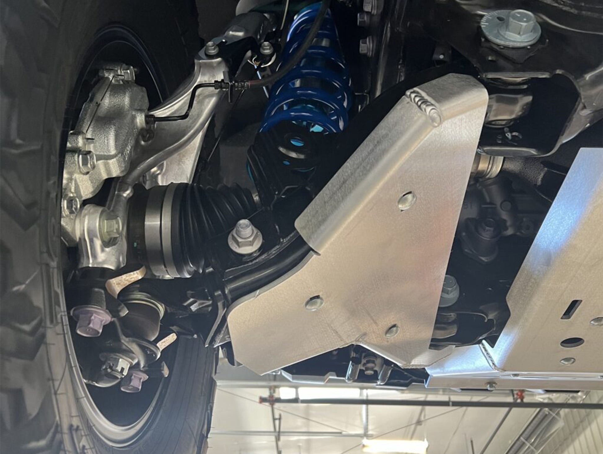 Built with your choice of laser cut 3/16″ steel or 1/4″ aluminum, this plate is custom fit to protect the lower control arms of 4th generation Tacomas with premium quality, fit and finish.