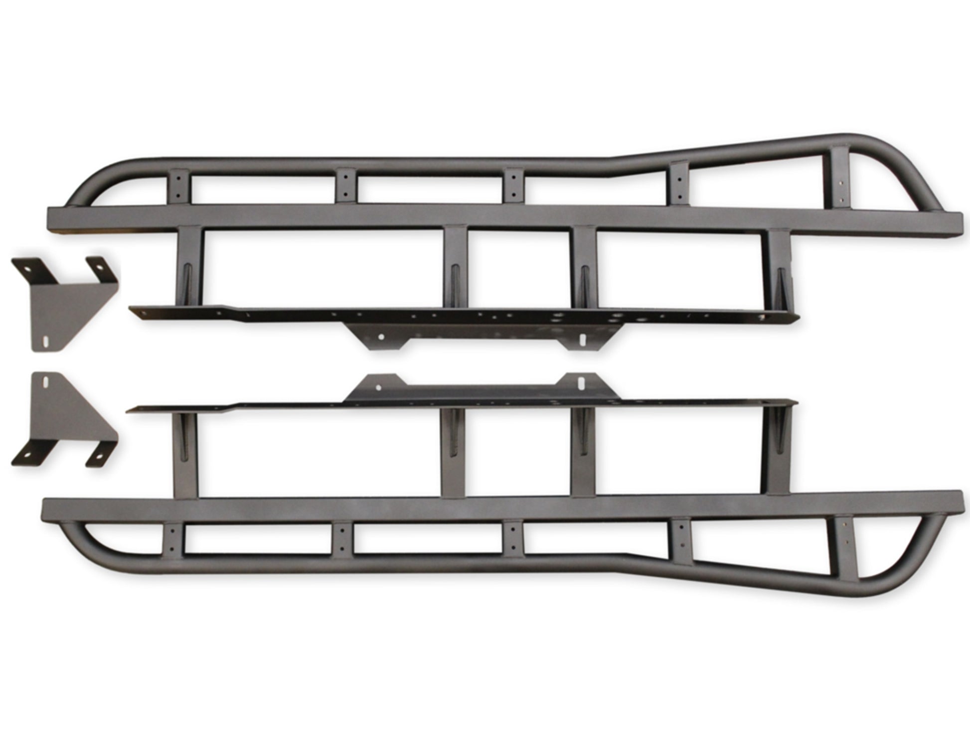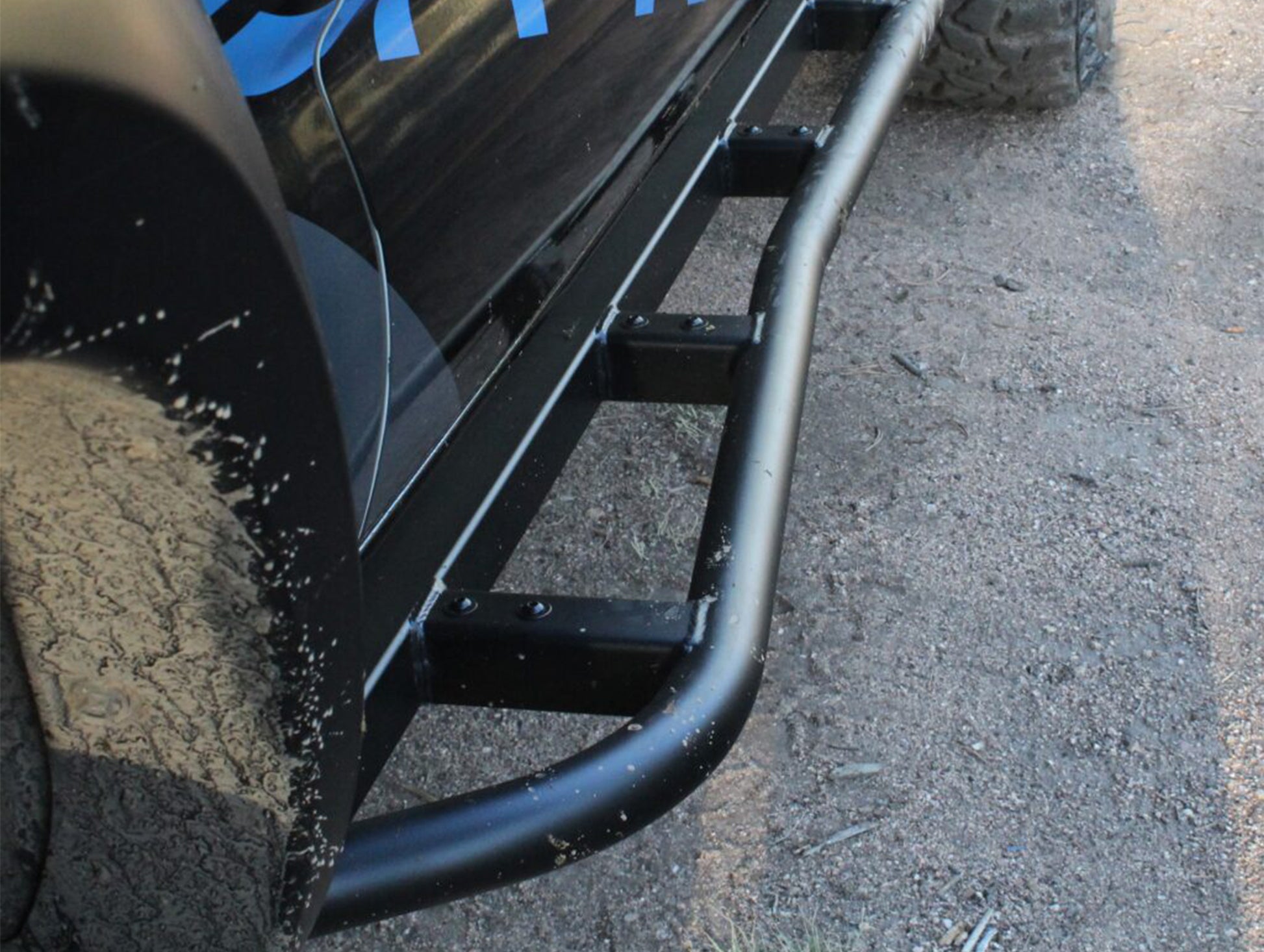 - Available with our heavy duty black textured powder coat finish, plus we take it a step further and coat all rock sliders with an epoxy primer for an exponentially more durable finish than competitors. We now powder coat in-house allowing us to provide better quality, and shorter lead times for the same cost!
