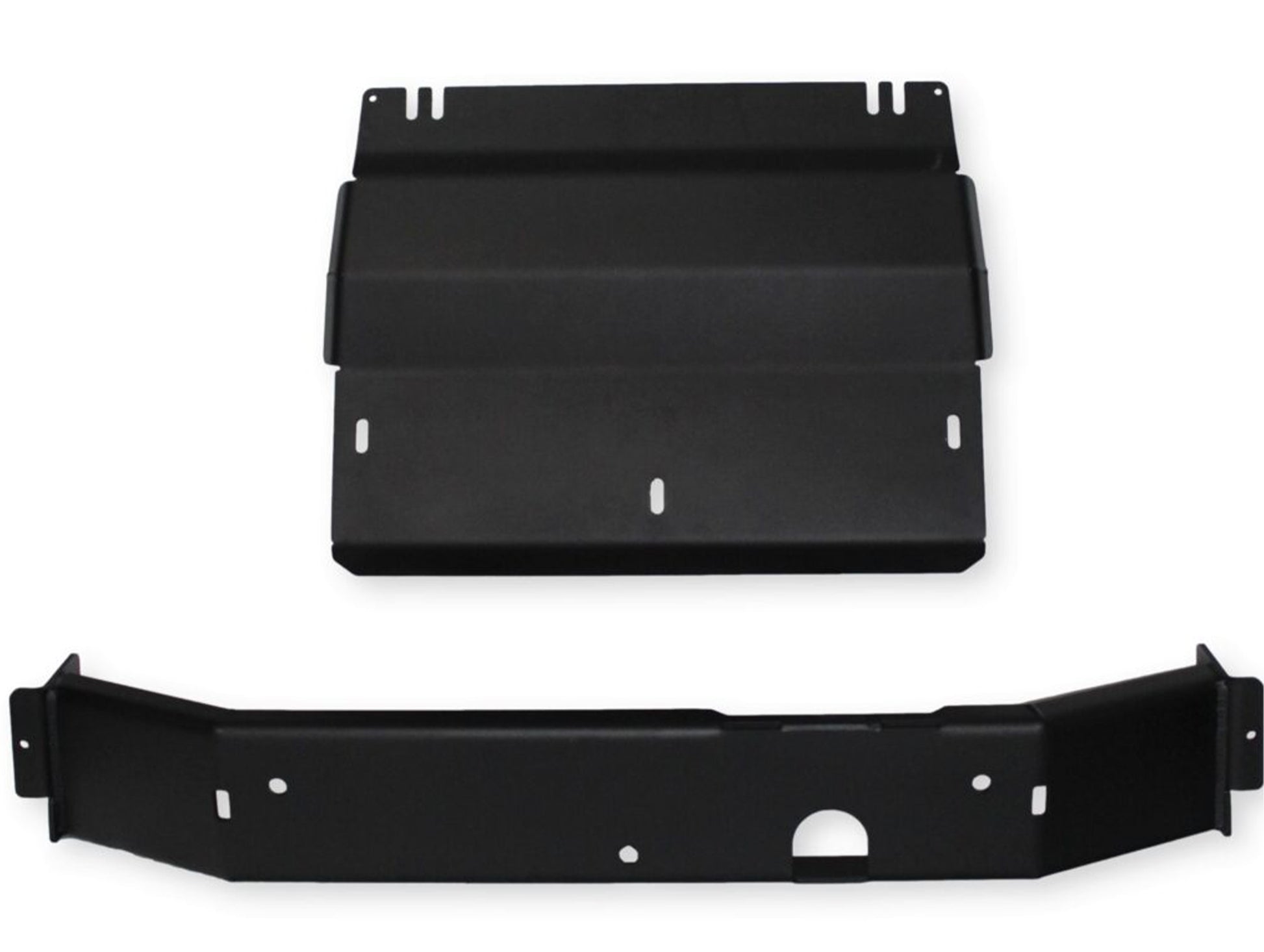 - Support Cross-member comes is black powder coated steel on both steel and aluminum skid plate options