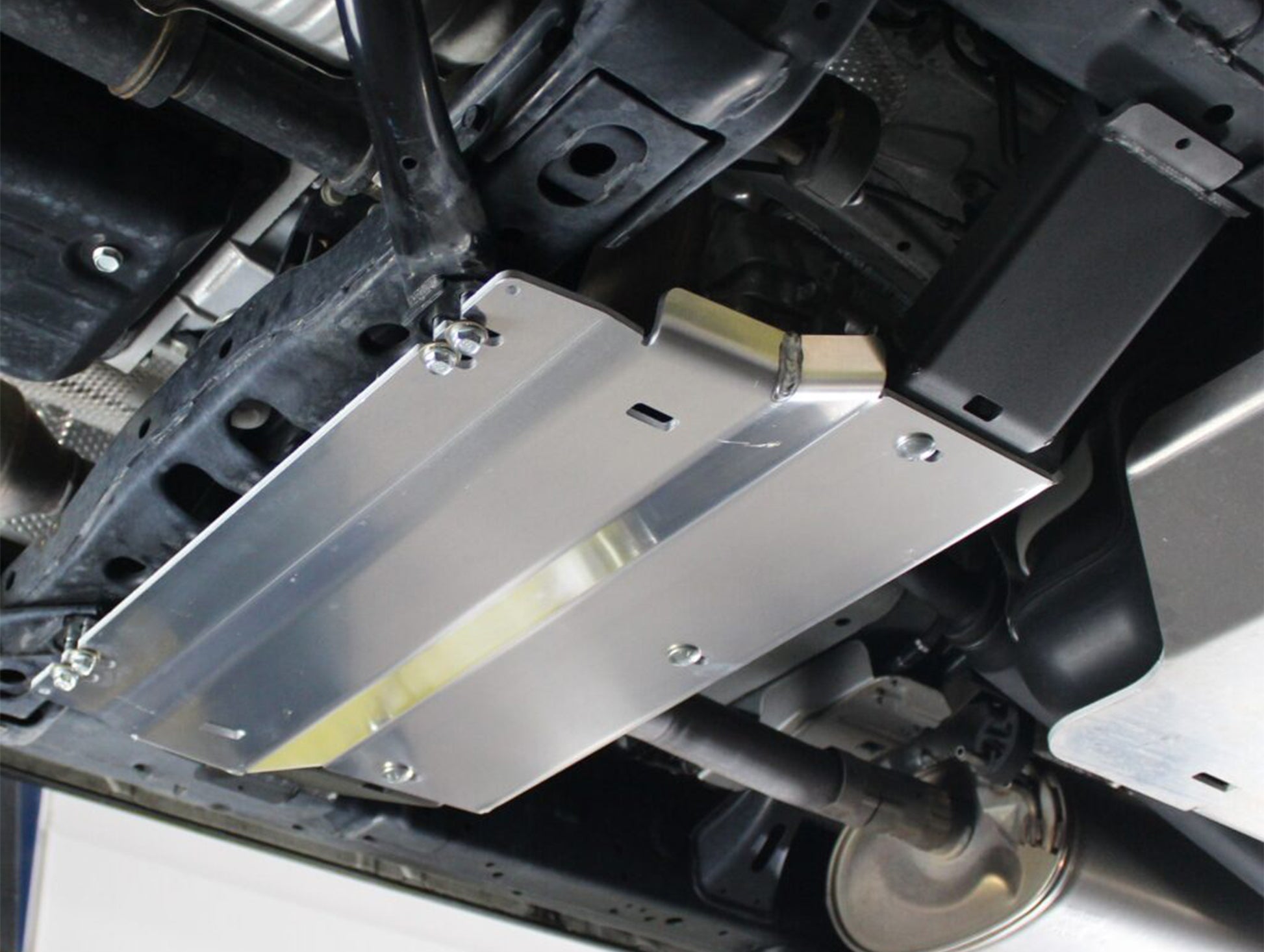 - Protects third cross-member, transfer-case, and exhaust pipe