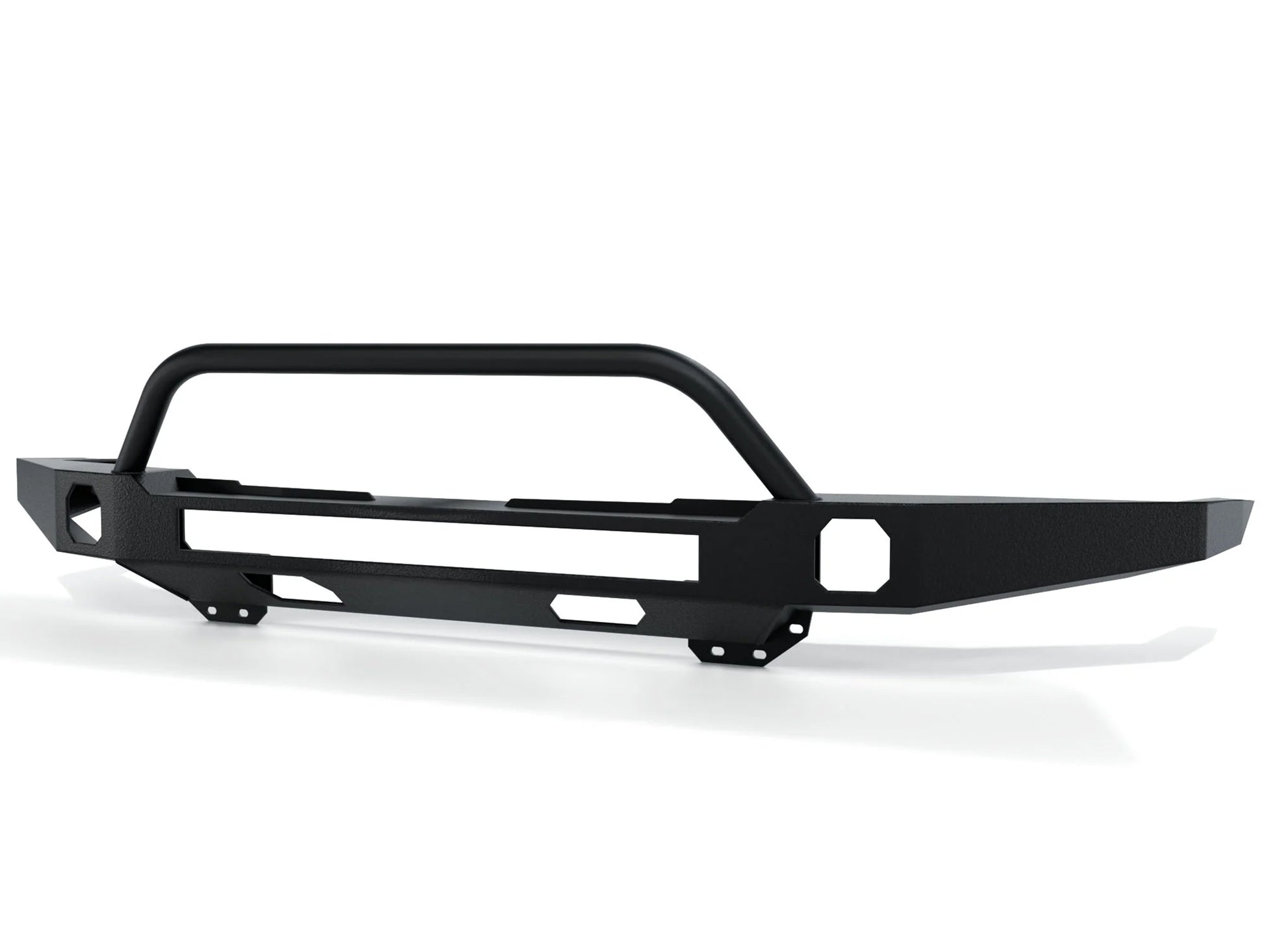 This bumper is equipped with universal access holes for convenient winch operation and includes a 30" universal light bar cutout, allowing you to customize your lighting setup for optimal visibility. Proudly made in the USA, the Full Plate Front Bumper supports local craftsmanship, ensuring top-notch quality and performance. Please note that this preconfigured bumper does not include a light bar, but it offers ample customization options to enhance your off-road experience. Upgrade your Tundra today and enjoy the perfect combination of strength, functionality, and American craftsmanship.