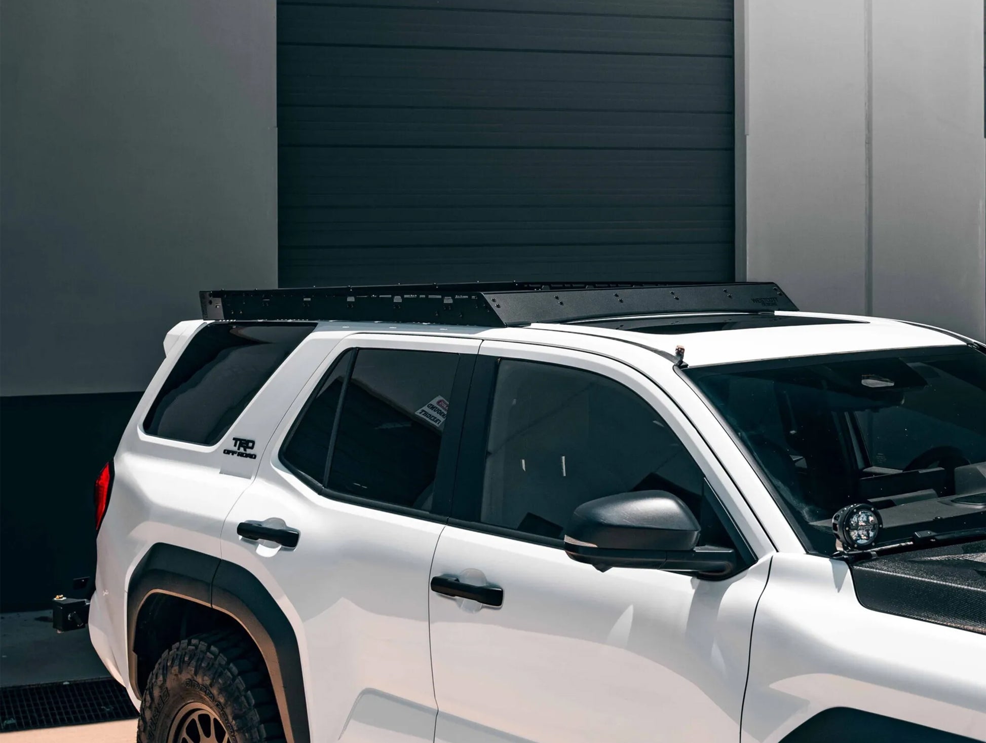 Check-out Westcott Designs 3/4 roof rack for the ALL-NEW 2025 Toyota 4Runner (6th Gen). Offered with or without floor inserts, all racks include extruded aluminum cross bars. Westcott Designs carefully designed their rack to minimize wind noise. Features aluminum construction for light weight with steel mounting brackets for strength and to maximize load capacity. Our rack features a low profile installed height of just 3.5” and can be configured to a “basket” mount set up as well. All racks come with a set of our signature Stainless Steel Westcott Designs bottle openers to help you enjoy your favorite refreshments when out on the trails.