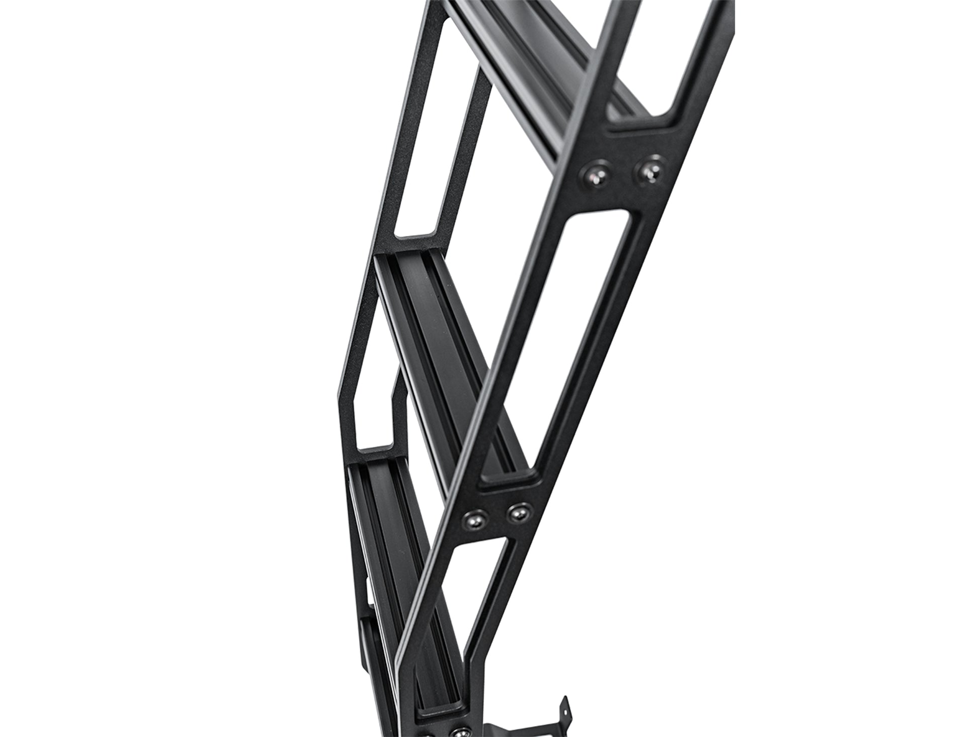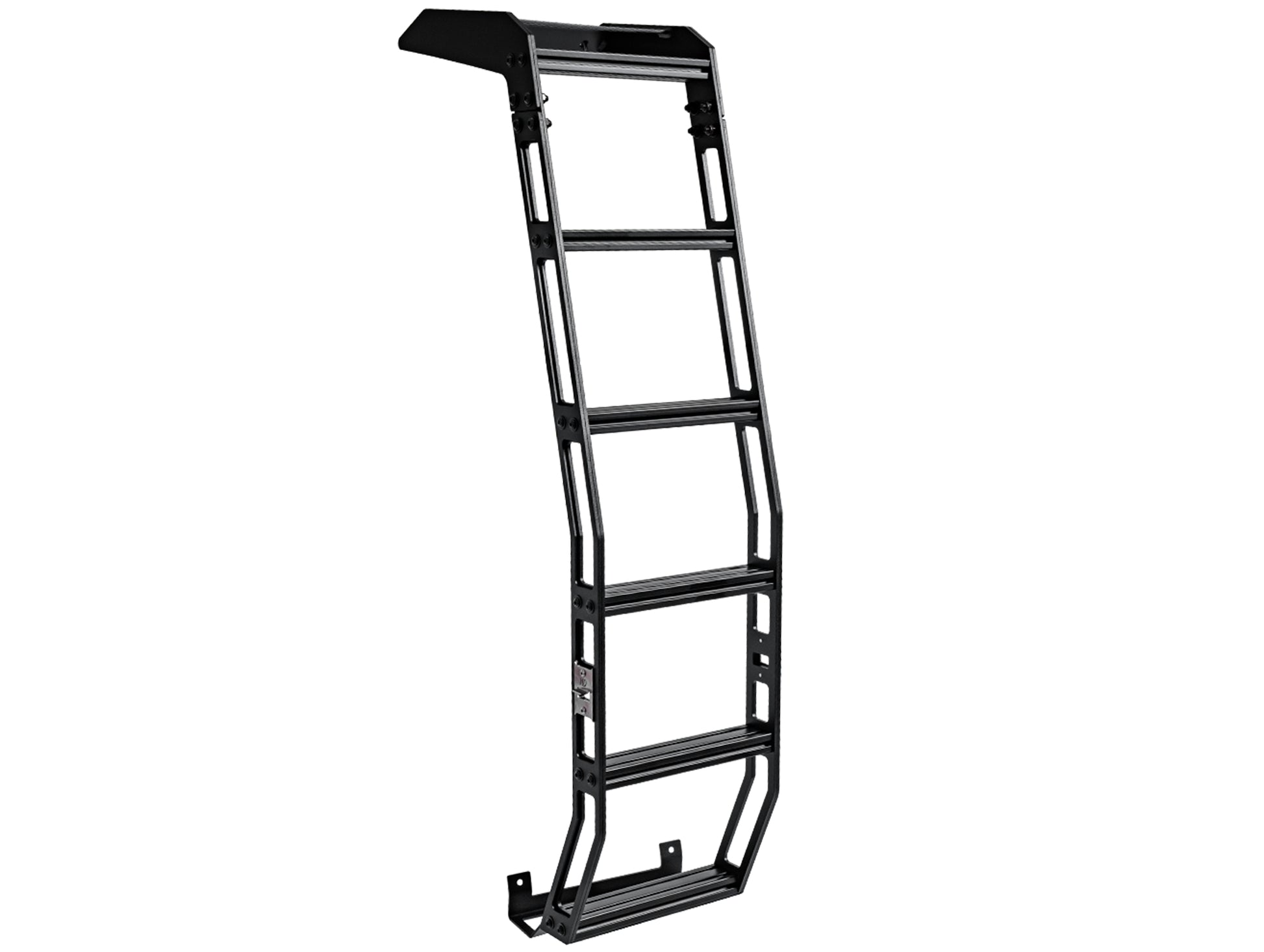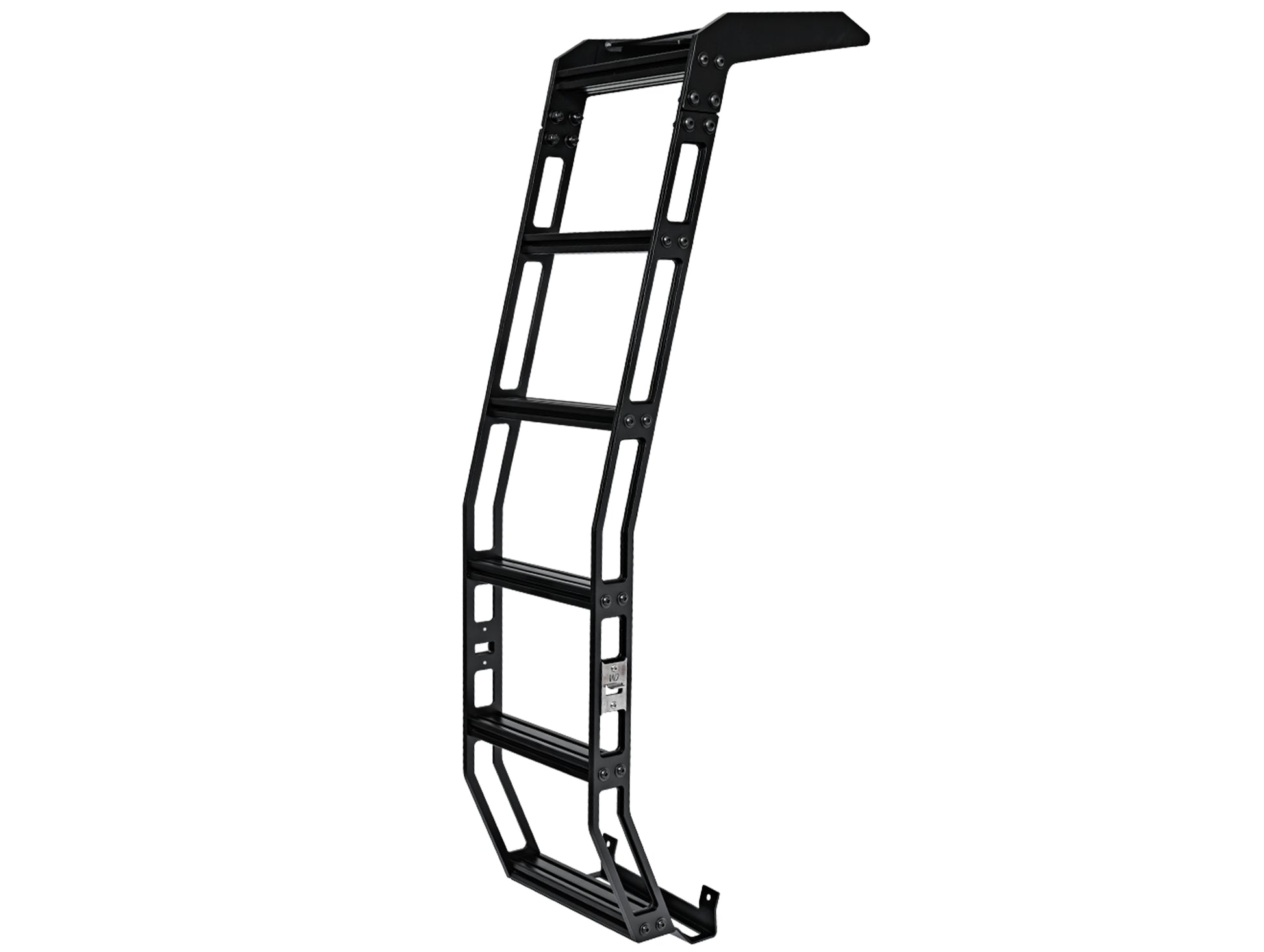 Westcott Designs rear hatch ladder for the All-New 2024 Toyota Land Cruiser LC250. Construction is all aluminum to keep it light weight. The uprights are double layered 1/4 aluminum to make them super rigid. We realized with all the ladders on the market they just did not have large enough steps so we took it to the next level. We put in a 1”x 2” step to reassure a solid step ever time. Each step has tracks in it to allow for additional attachment points. This ladder is the most solid mounting ladder on the market!