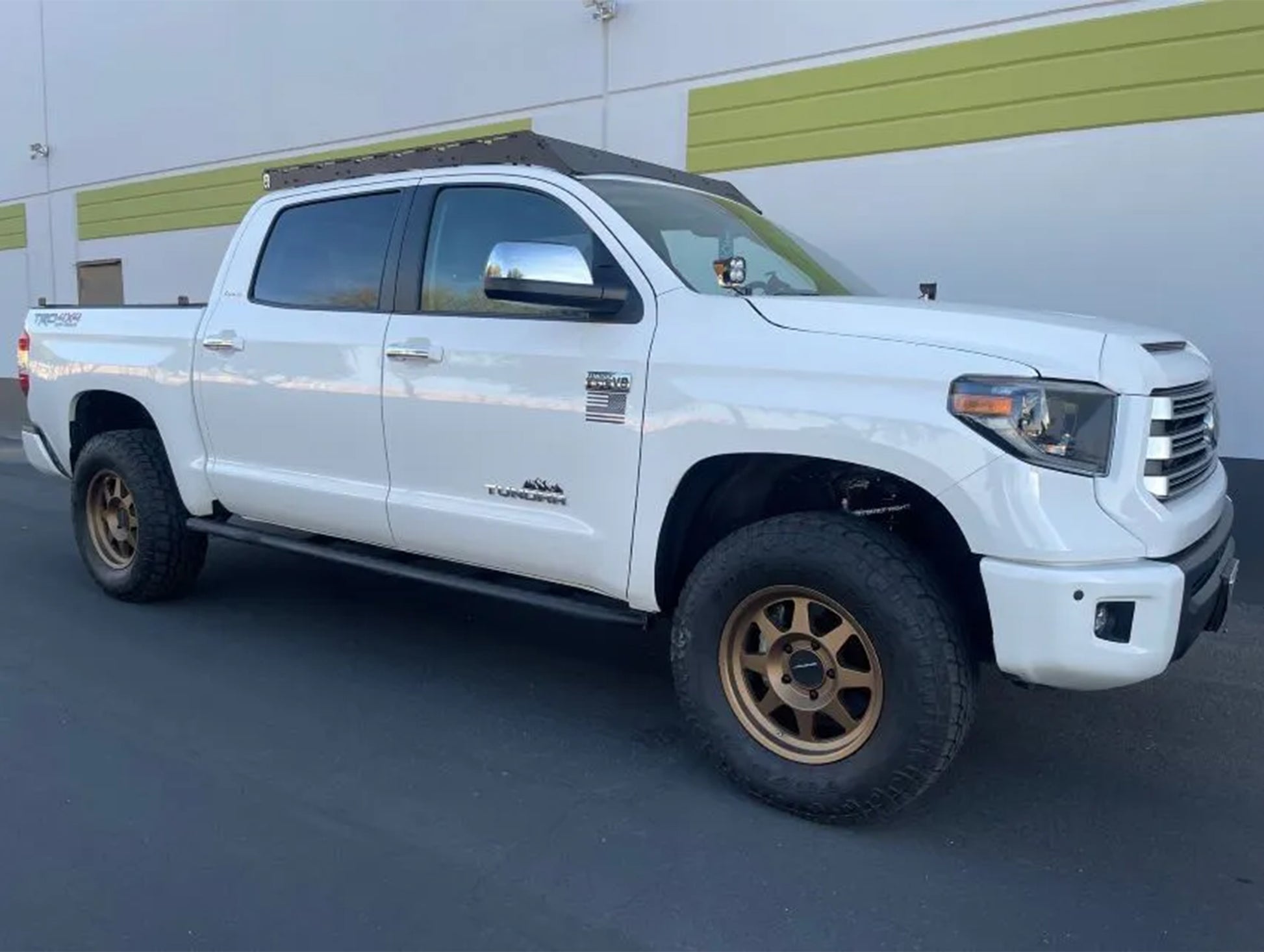 Westcott Designs full length roof rack for 2007-21’ Toyota Tundra CrewMax. This low-profile roof rack has a sleek design that hugs your existing roof line and still allows full function of your sunroof. Features aluminum construction for light weight with steel mounting brackets for strength and to maximize load capacity. Includes (8) extrude honed cross bars to accept a wide array of accessories and your choice of front valance to accept lighting options of your choice*. All racks come with a set of our signature Stainless Steel Westcott Designs bottle openers to help you enjoy your favorite refreshments when out on the trails and complete hardware.